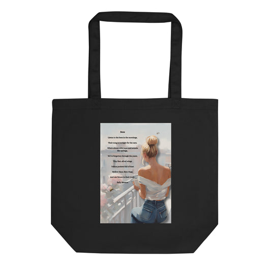 'Bees' eco tote bag with impressionist oil style artwork and original poem by writer Sally Meeson