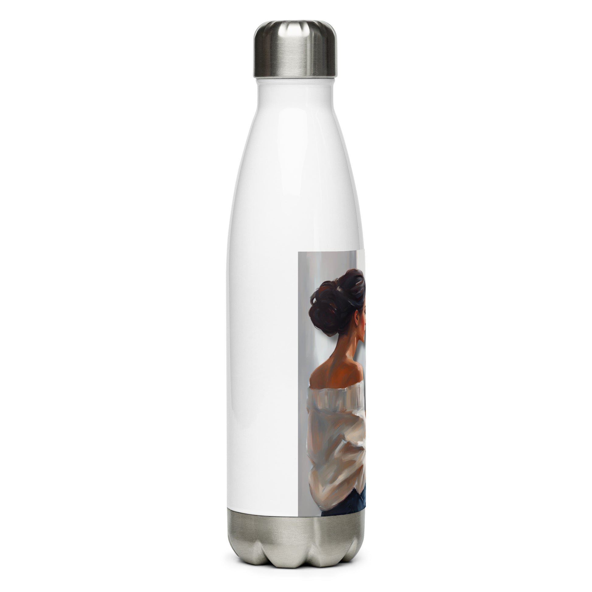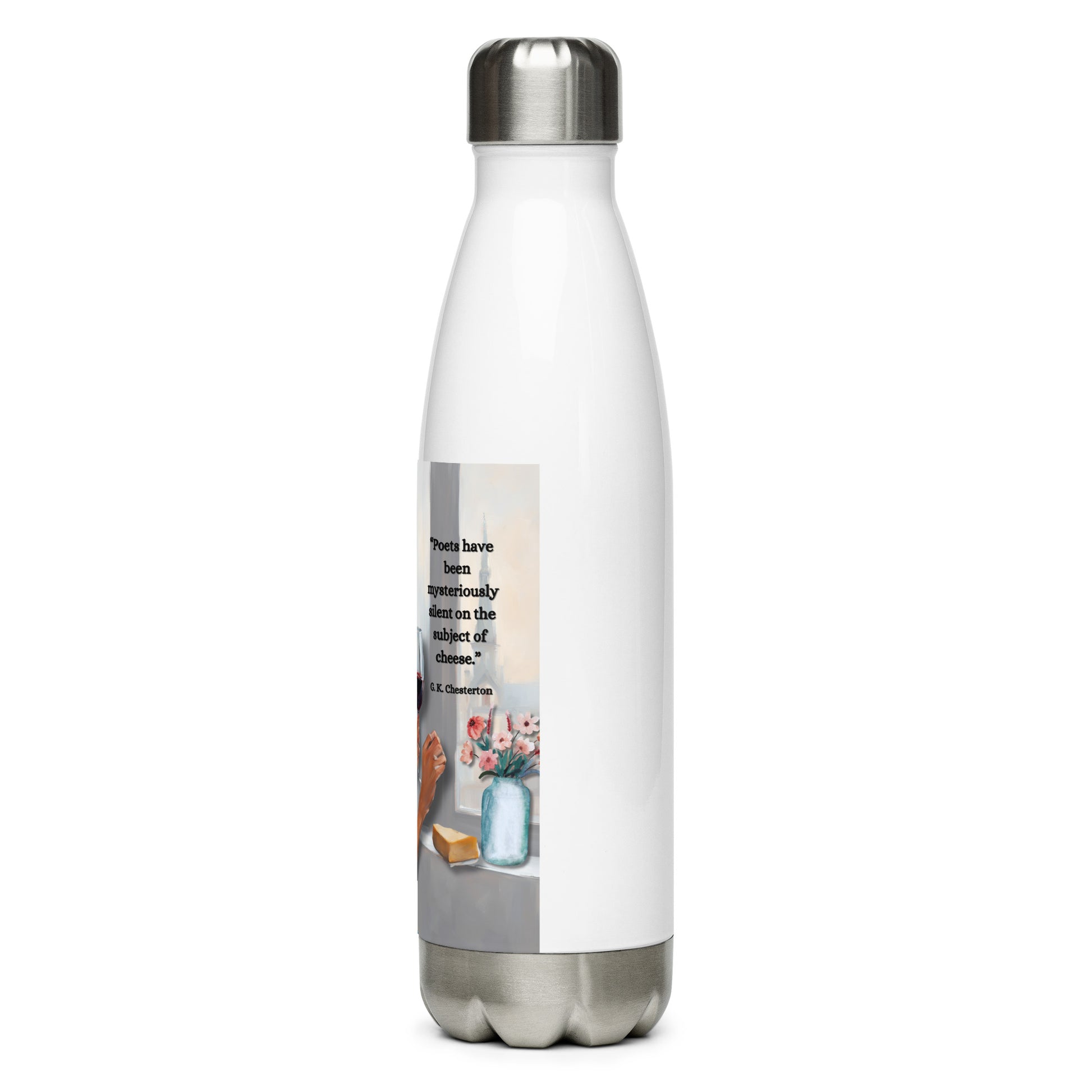 'Cheese' stainless steel water bottle with impressionist oil style artwork and quote from author G.K. Chesterton
