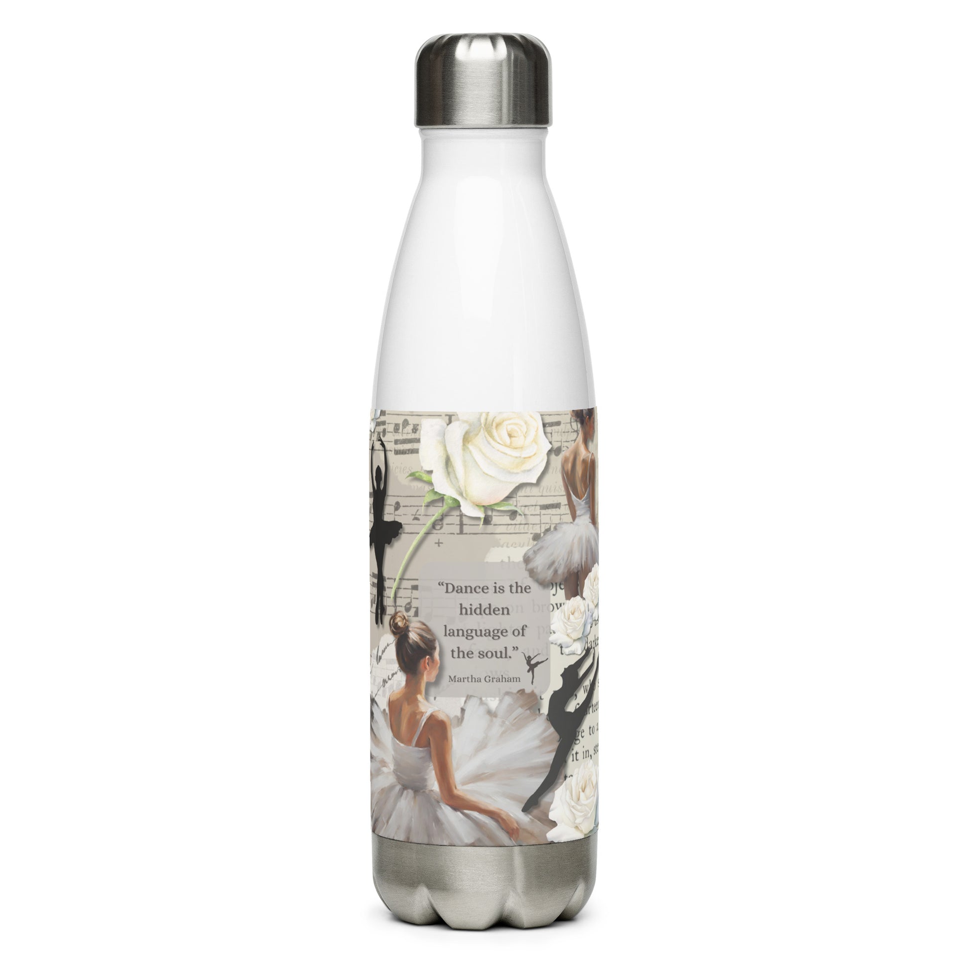 'Dance' stainless steel water bottle with impressionist oil style artwork and quote from dancer Martha Graham
