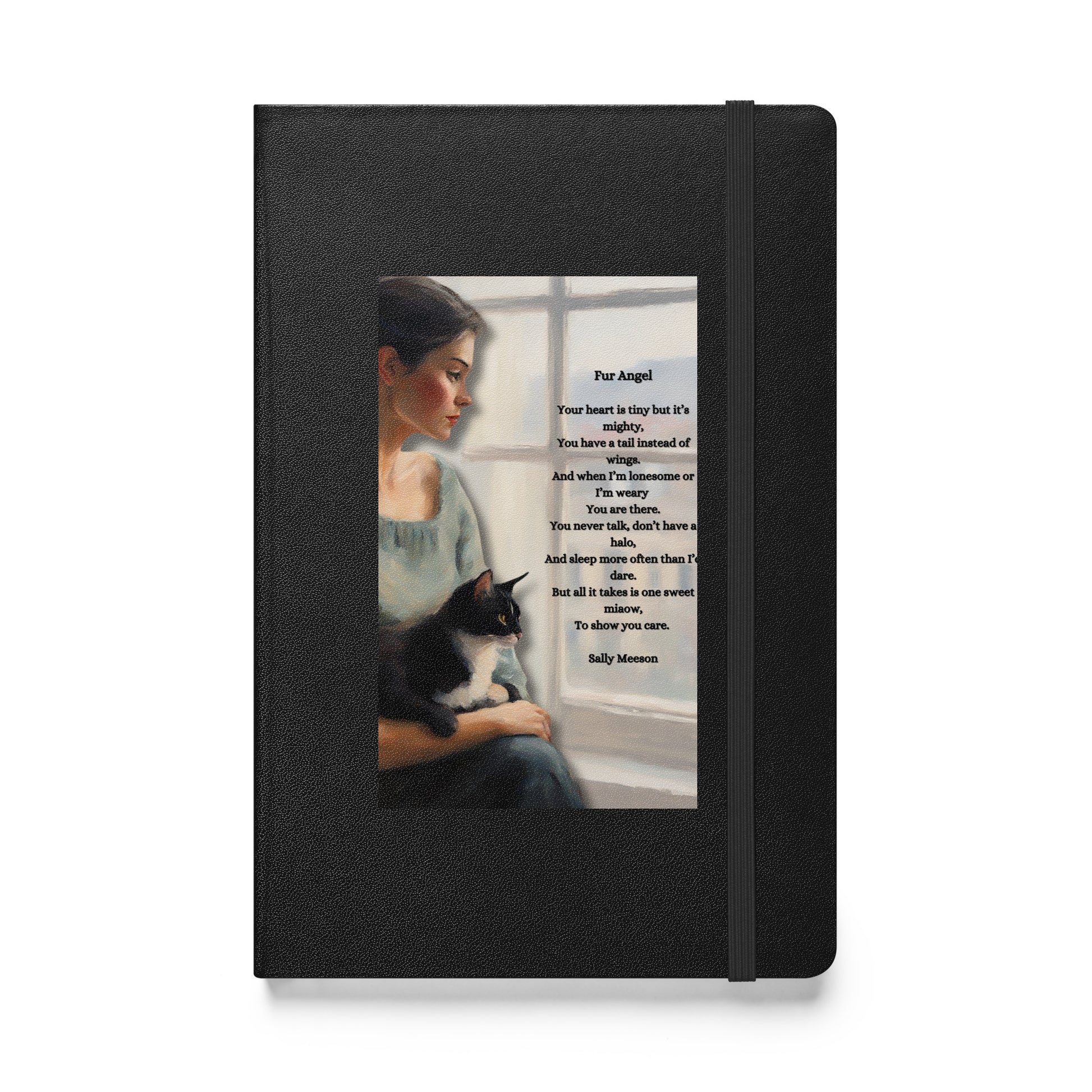 'Fur Angel' hardcover bound notebook with impressionist oil style artwork and original poem by writer Sally Meeson