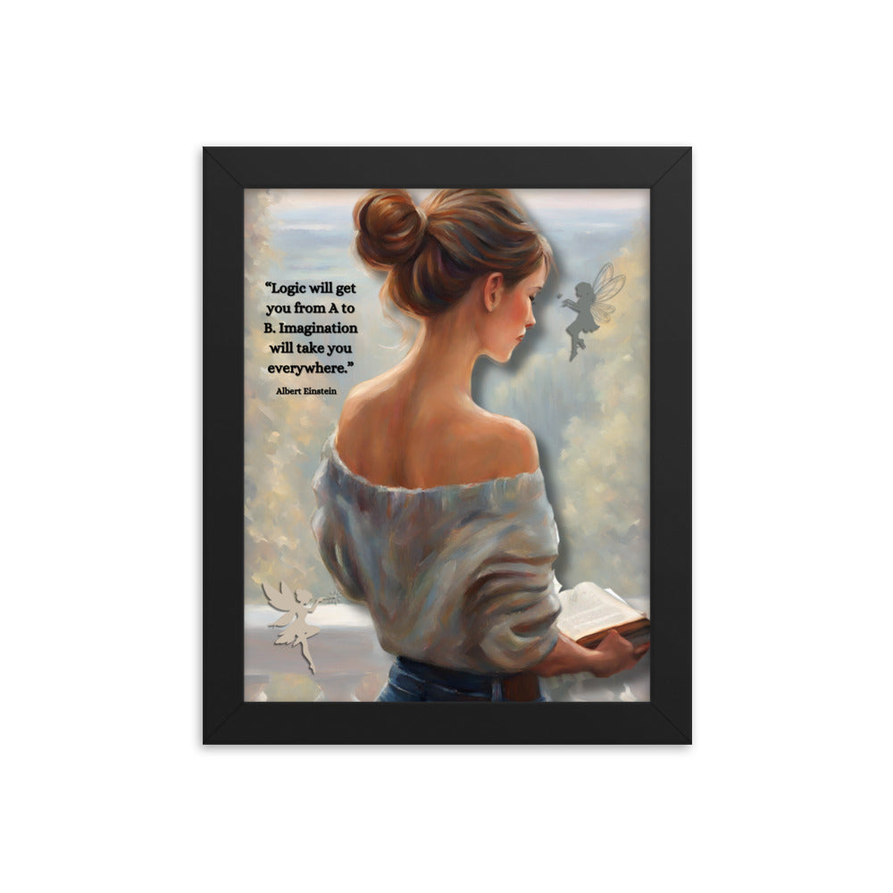 'Imagination' framed photo paper poster with impressionist oil style artwork and quote by Albert Einstein