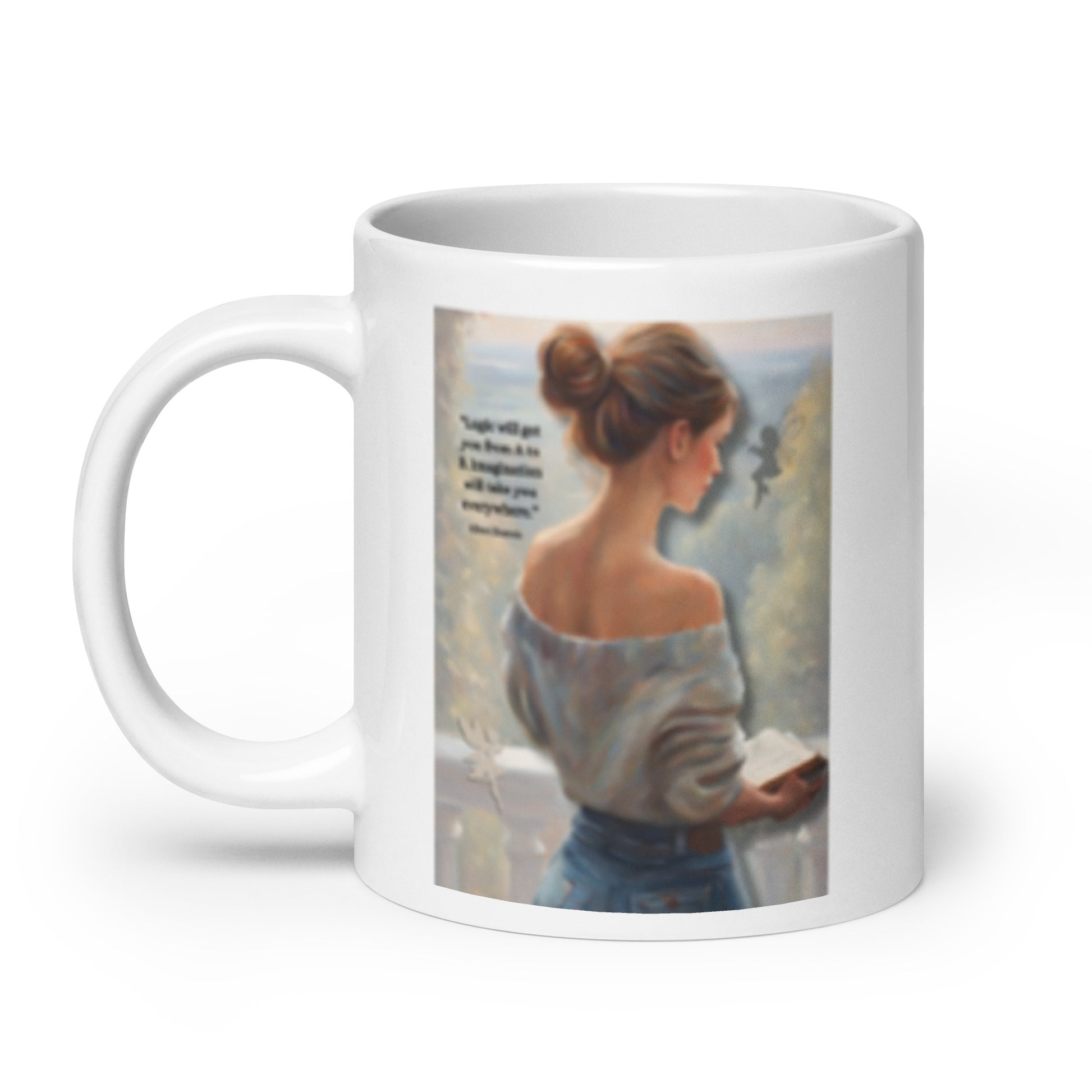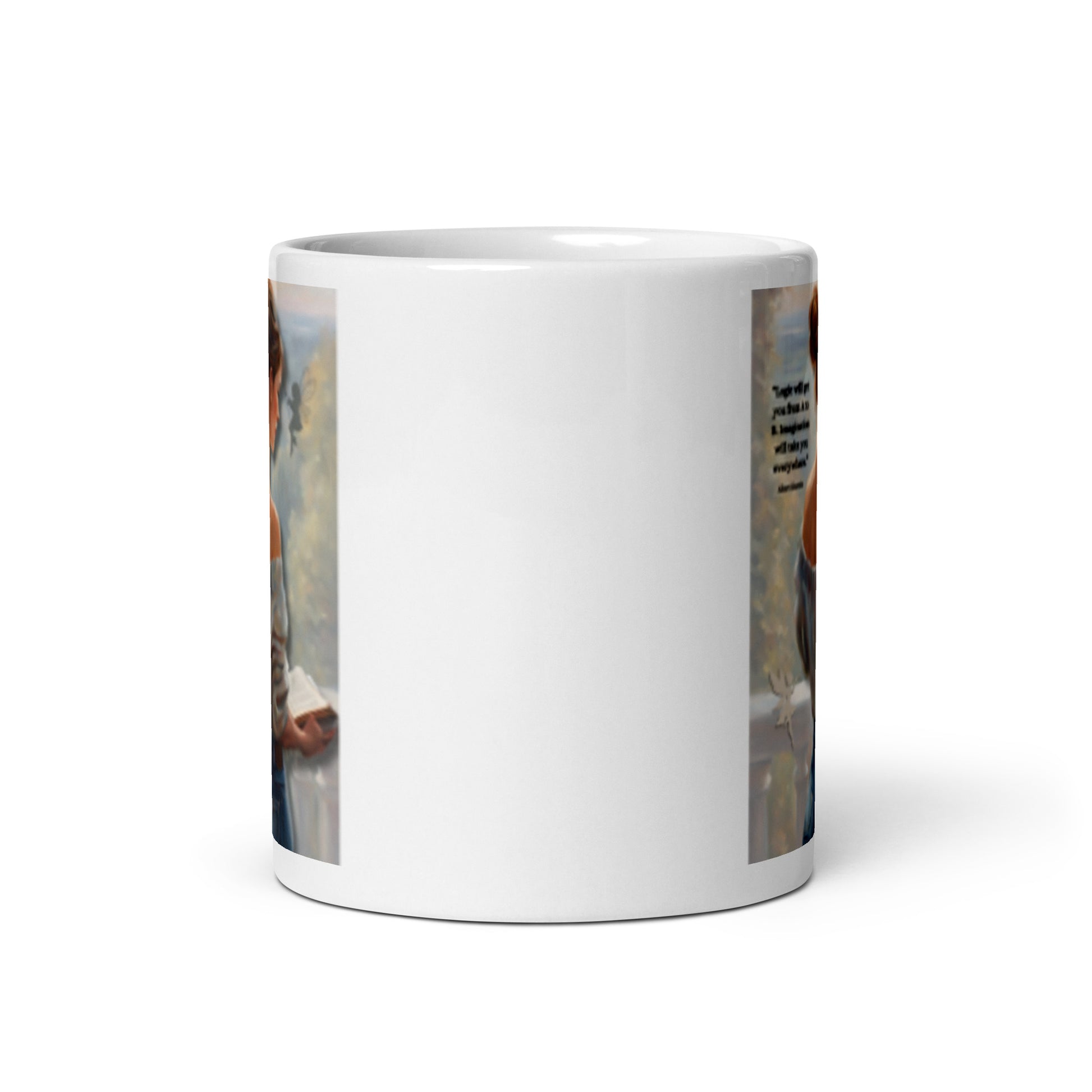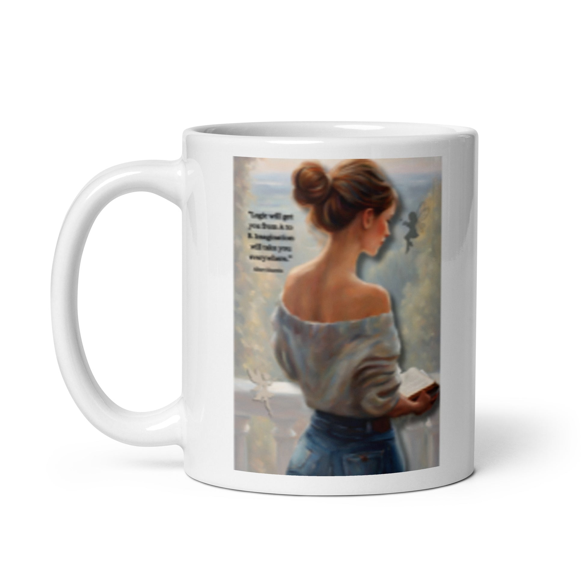 'Imagination' white glossy mug with impressionist oil style artwork and quote by Albert Einstein