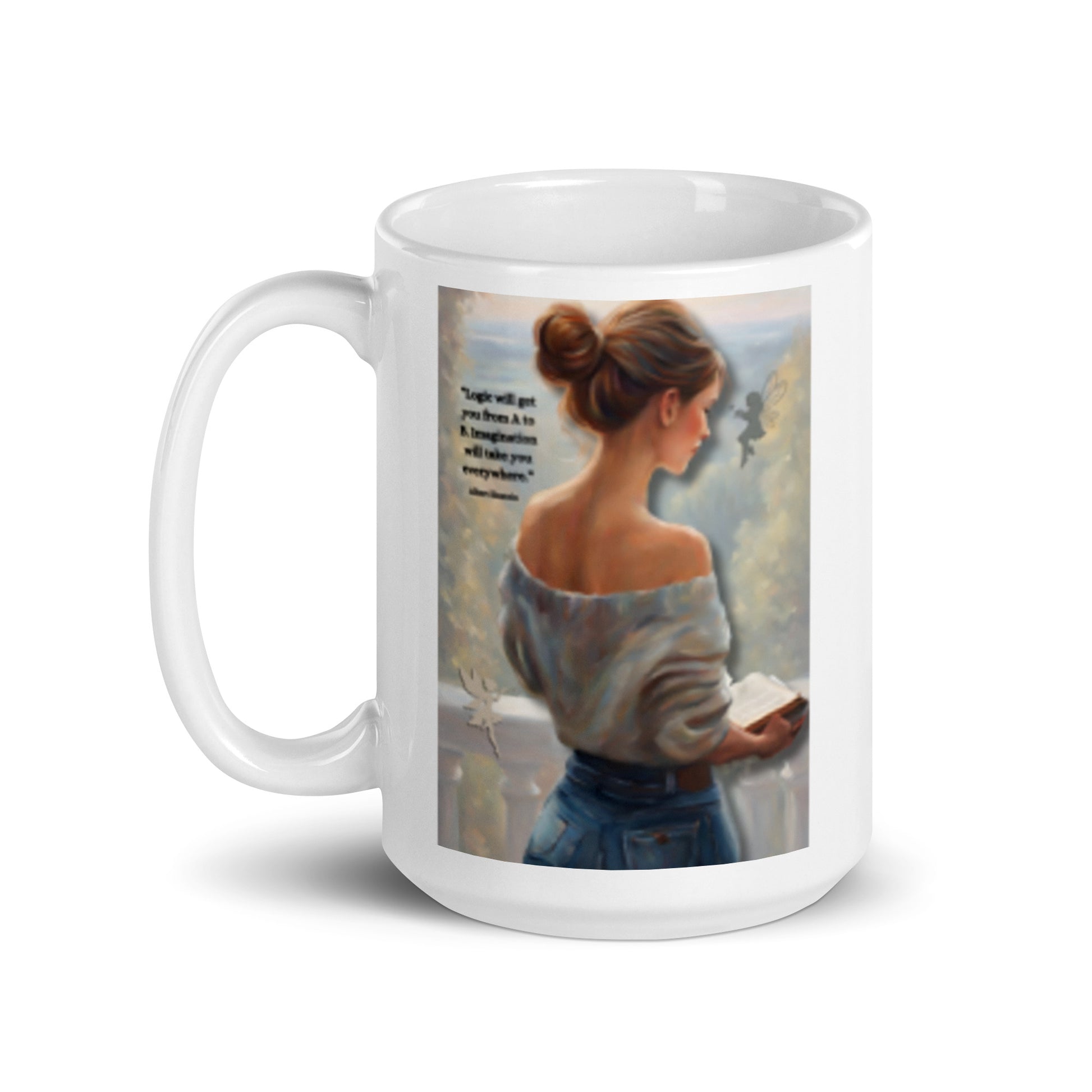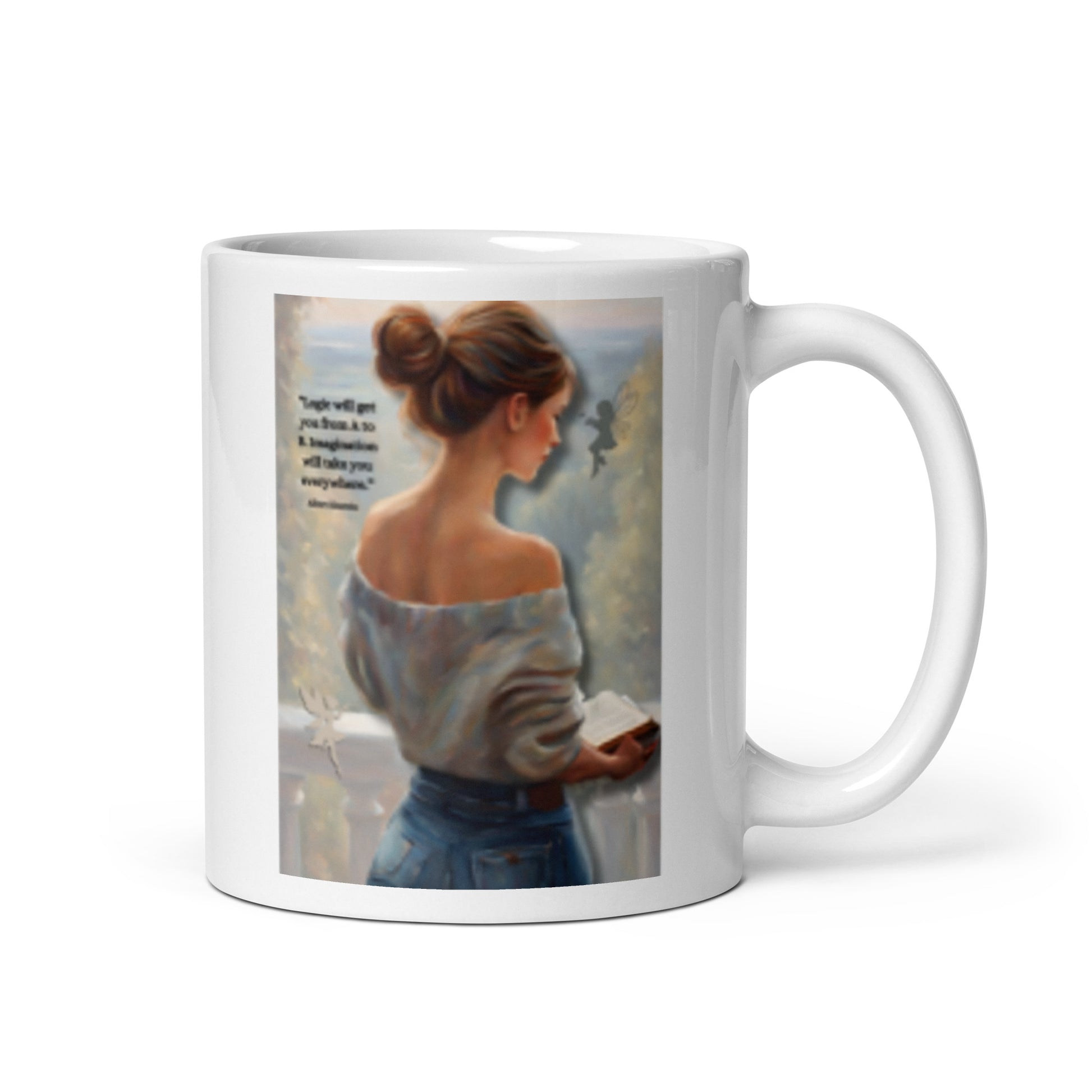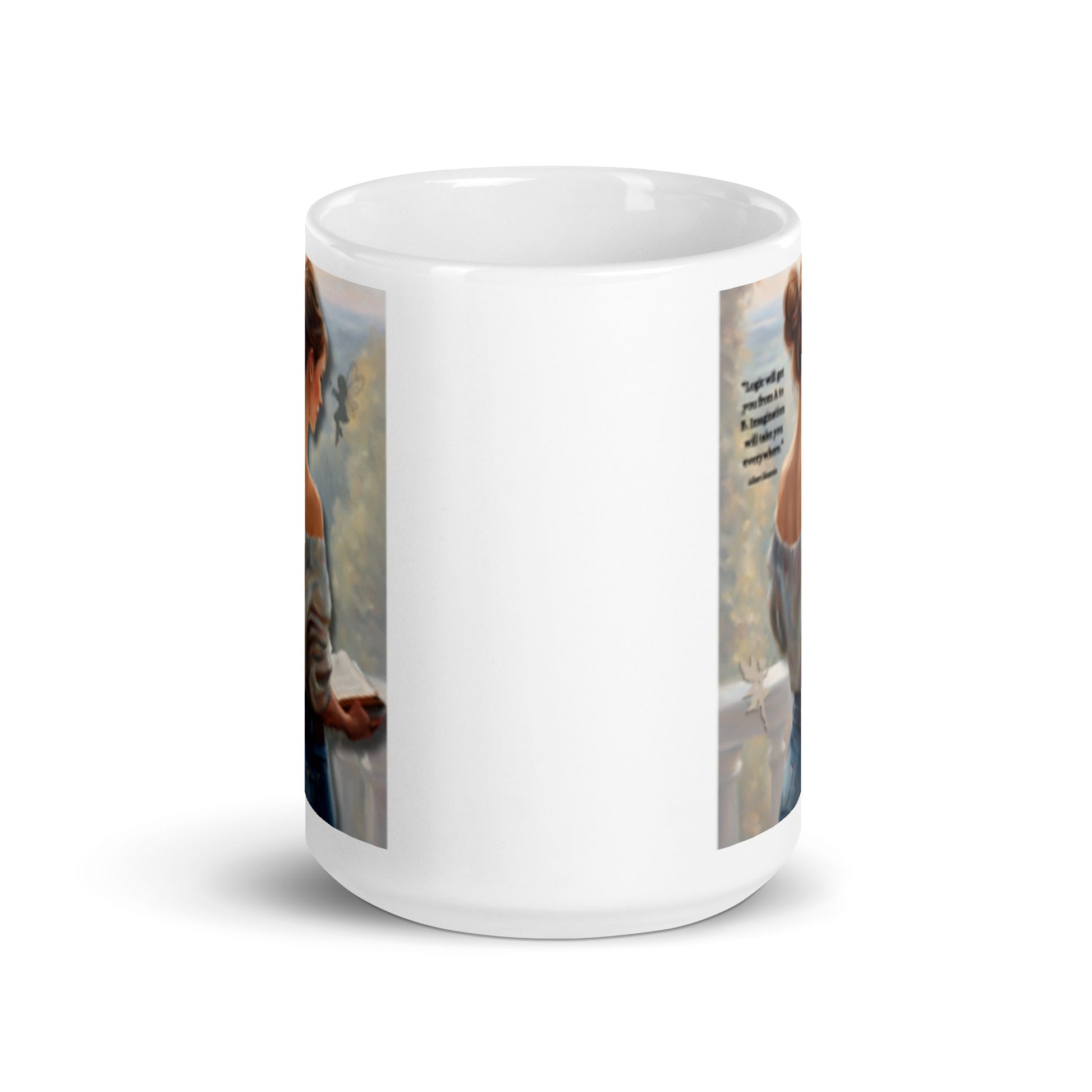 'Imagination' white glossy mug with impressionist oil style artwork and quote by Albert Einstein