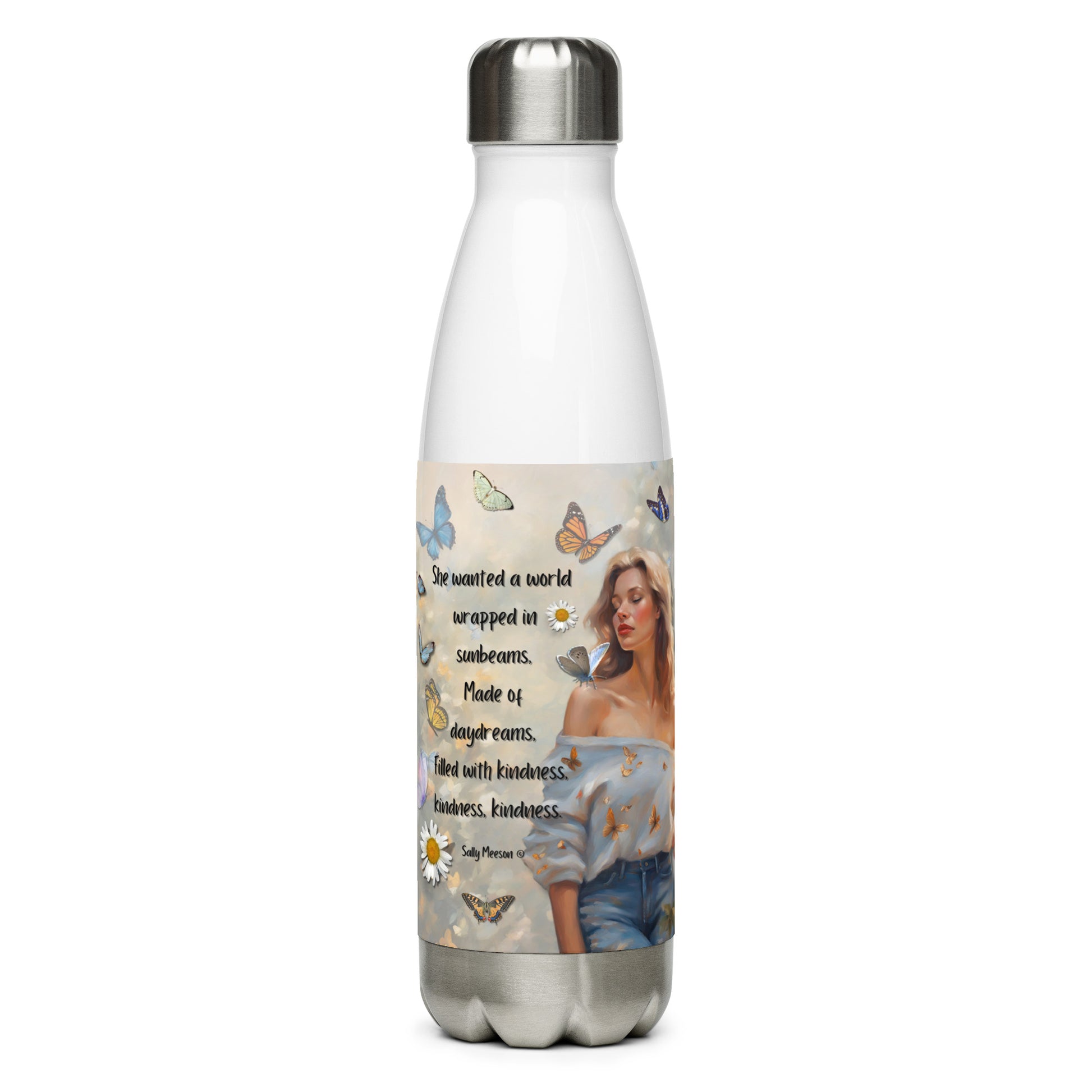 'Kindness' stainless steel water bottle with impressionist style artwork and quote by writer Sally Meeson