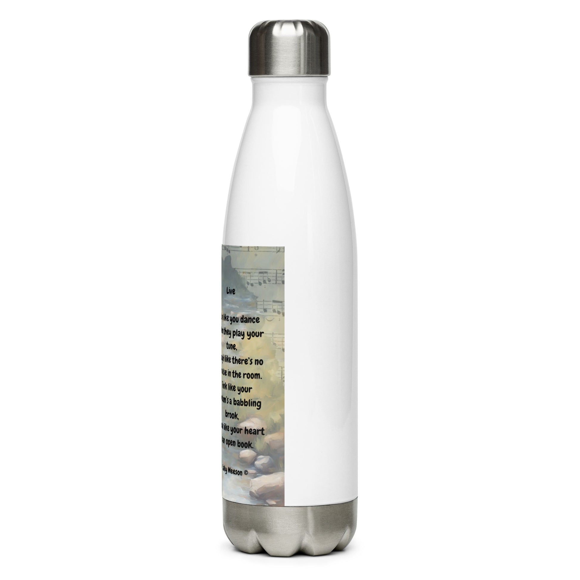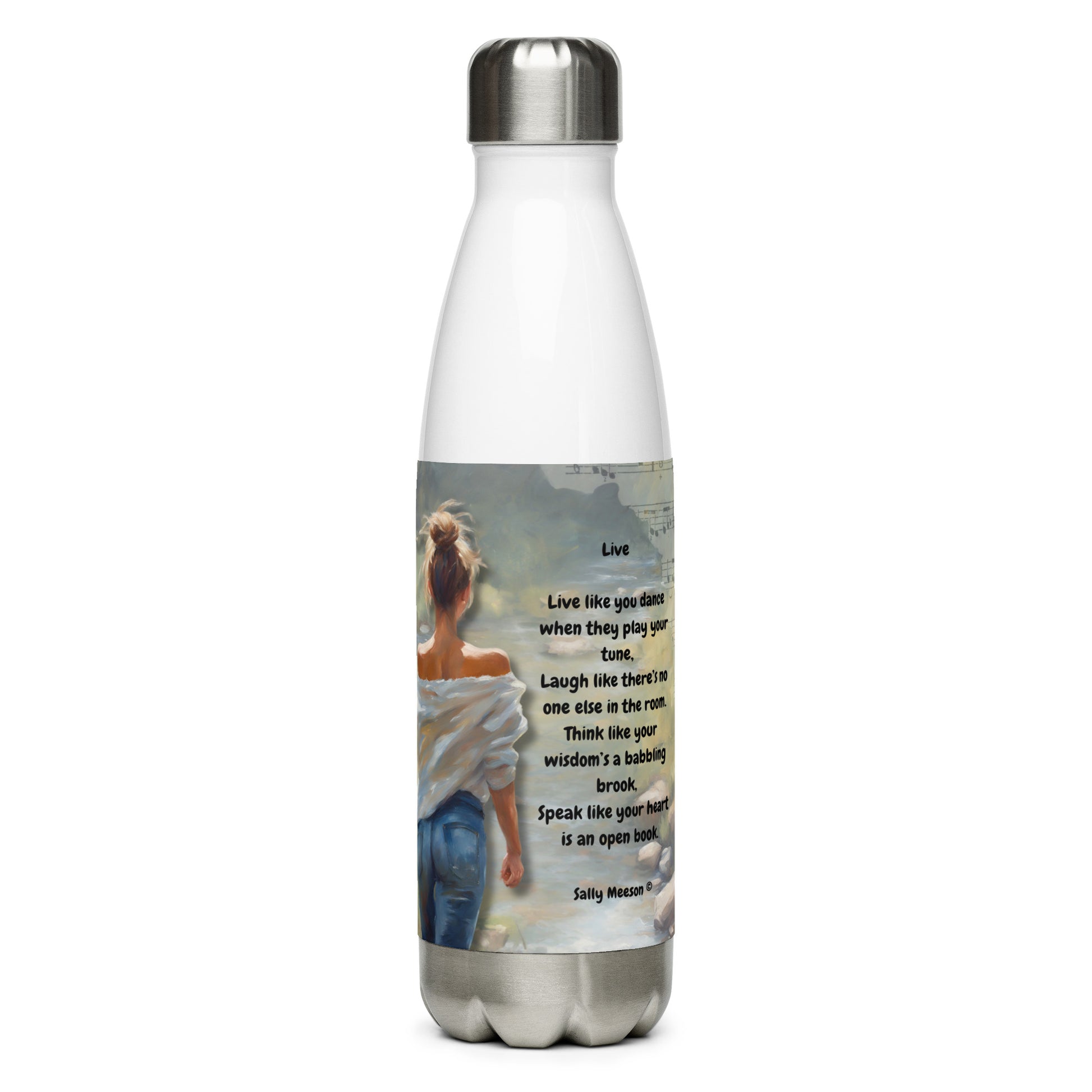 'Live' stainless steel water bottle with impressionist oil style artwork and original poem by writer Sally Meeson