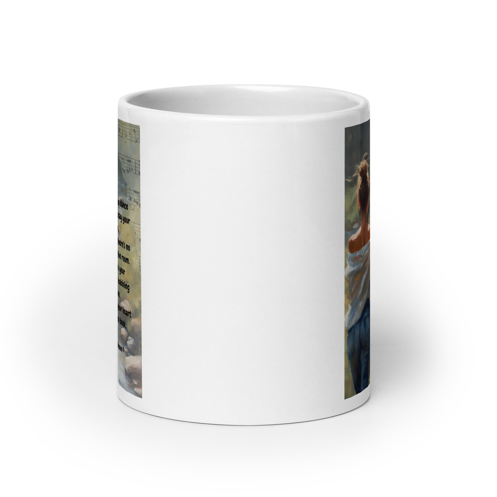 Calling all art and coffee lovers. Whether you're drinking your morning coffee, evening tea, or something in between—this mug's for you! It's sturdy and glossy with a vivid print that'll withstand the microwave and dishwasher. Contains original poem by write Sally Meeson: