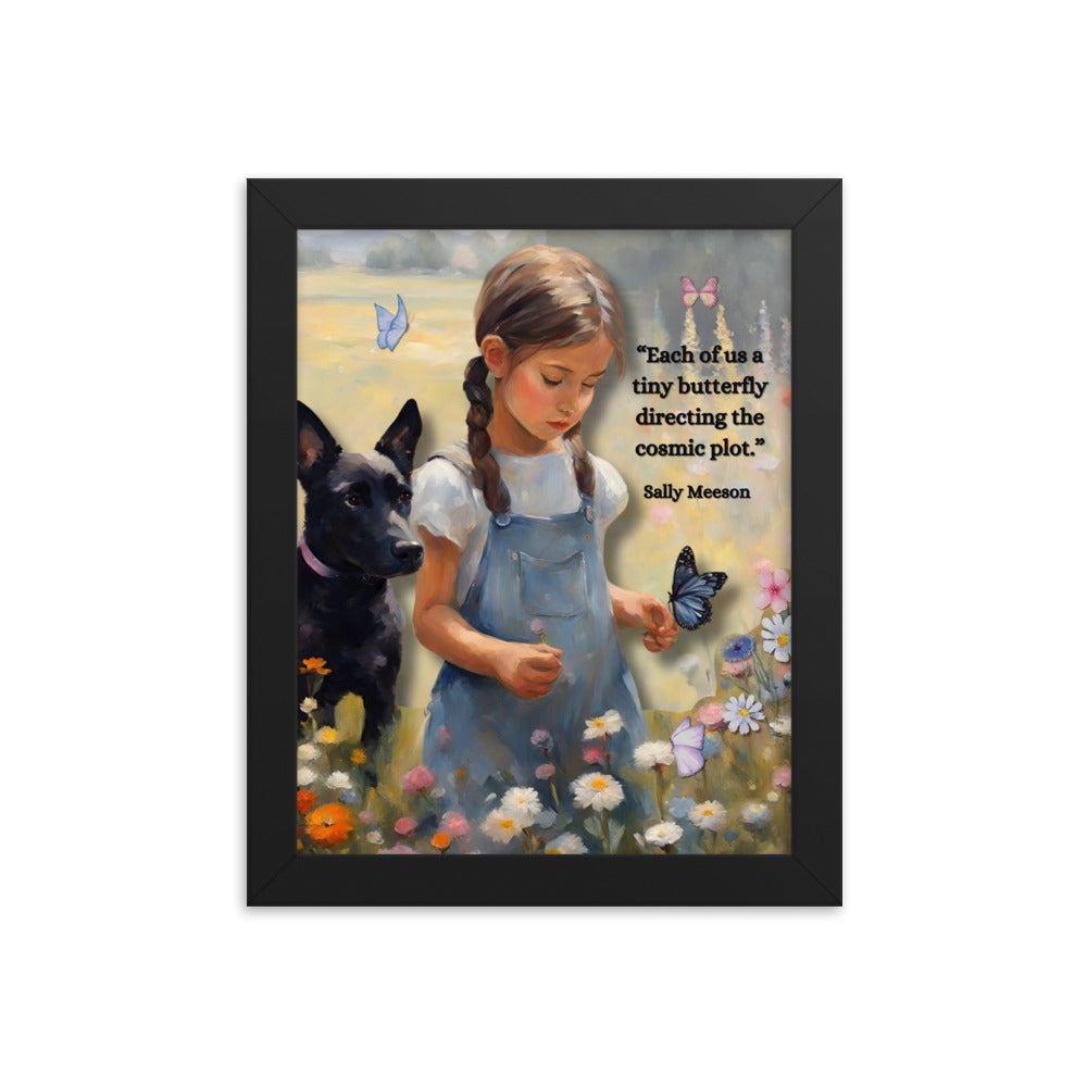 'Tiny Butterfly' framed photo paper poster with impressionist style artwork and original poem by writer Sally Meeson