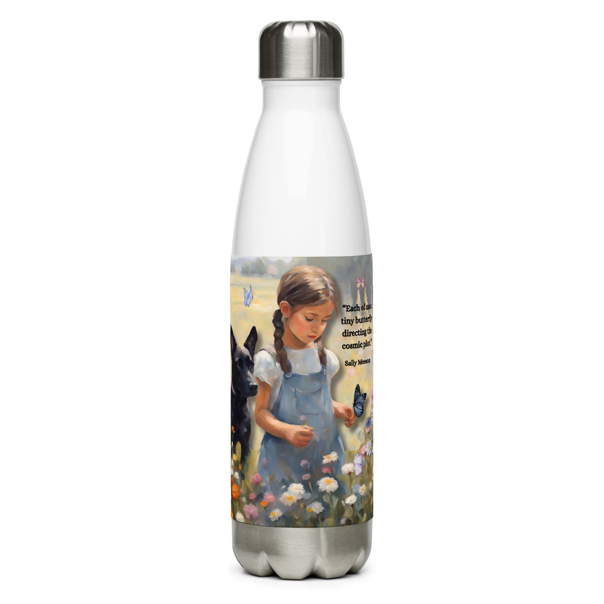 'Tiny Butterfly' stainless steel water bottle with impressionist oil style artwork and original quote by writer Sally Meeson